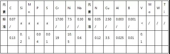 表1-1 S30432 奥氏体不锈钢标准成分